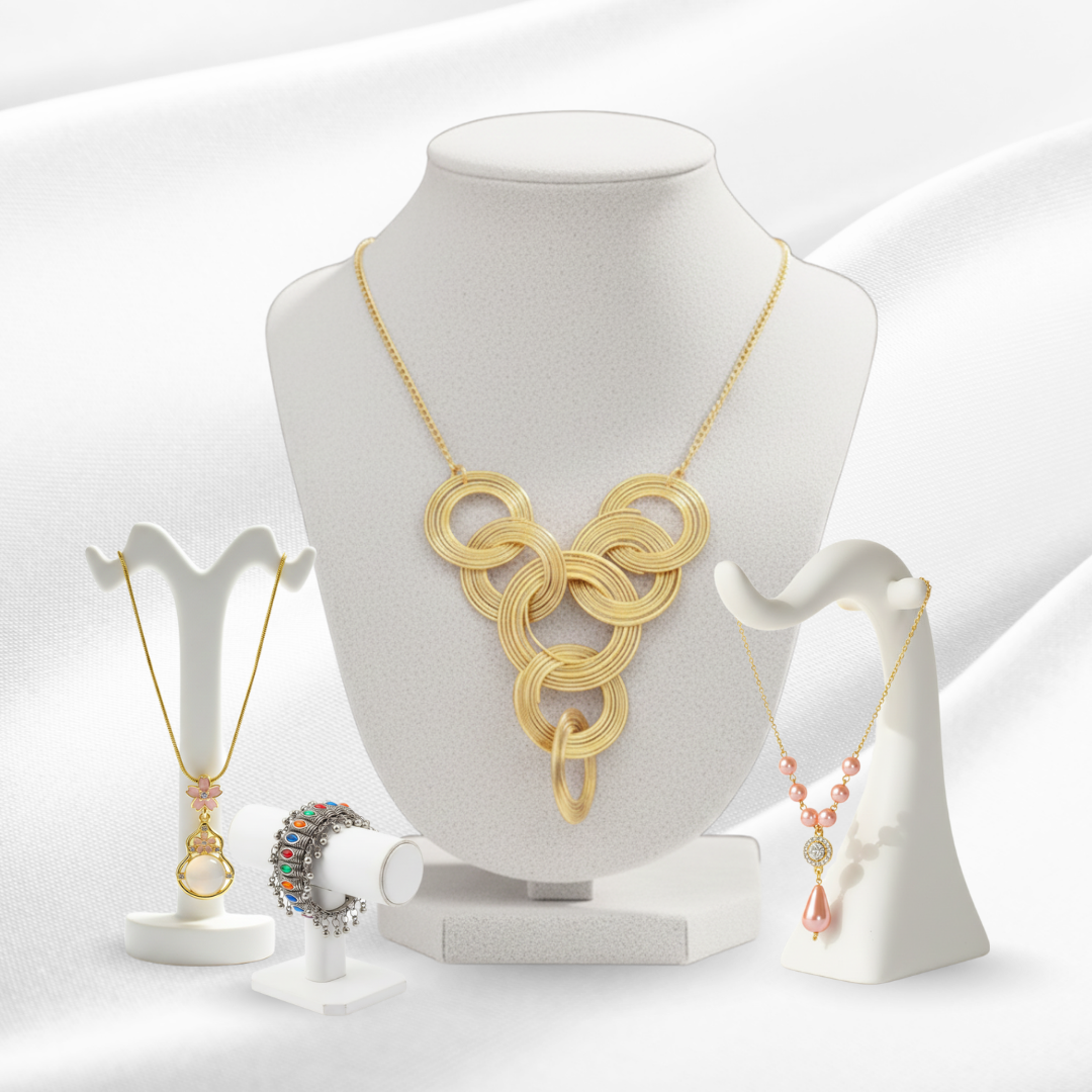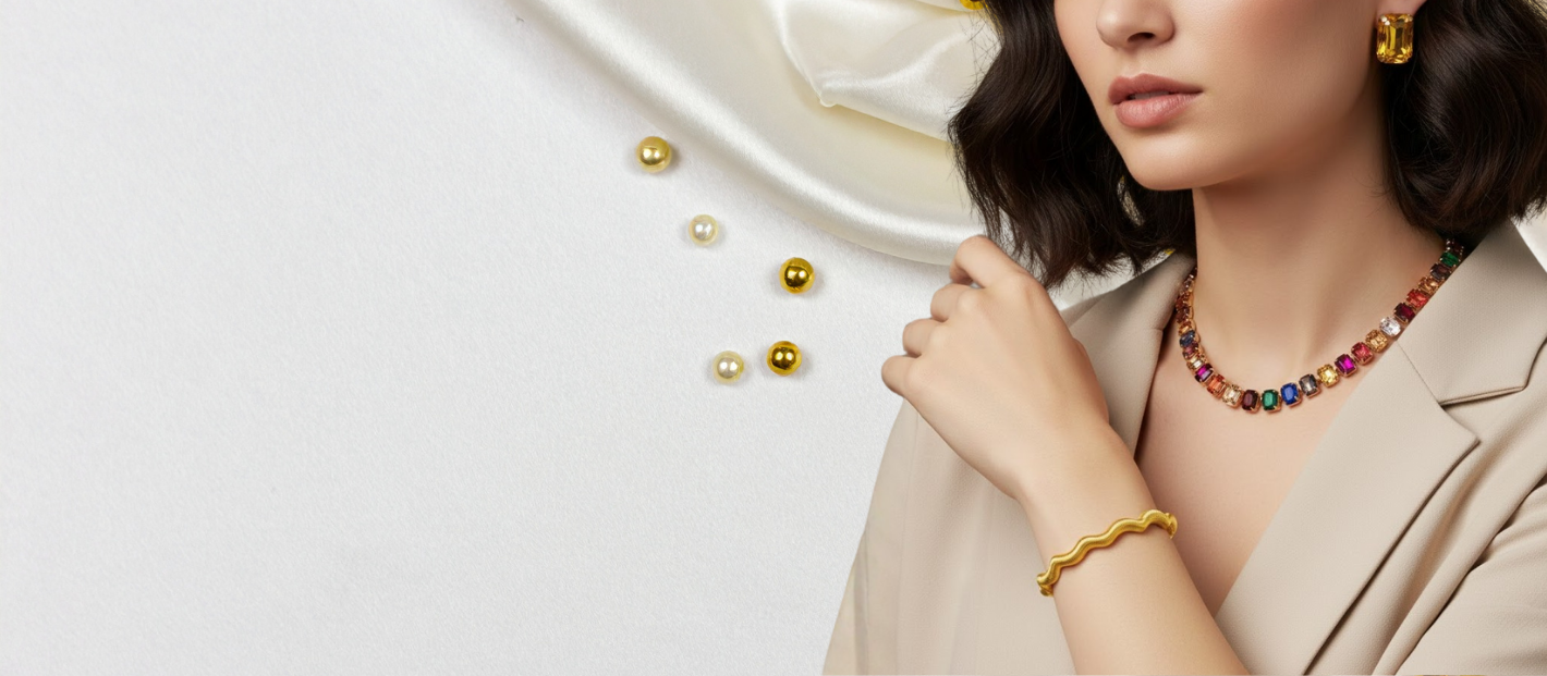 Our jewelry is crafted from high-quality materials such as sterling silver, gold, stainless steel, and hypoallergenic alloys. Each product page includes detailed material information.