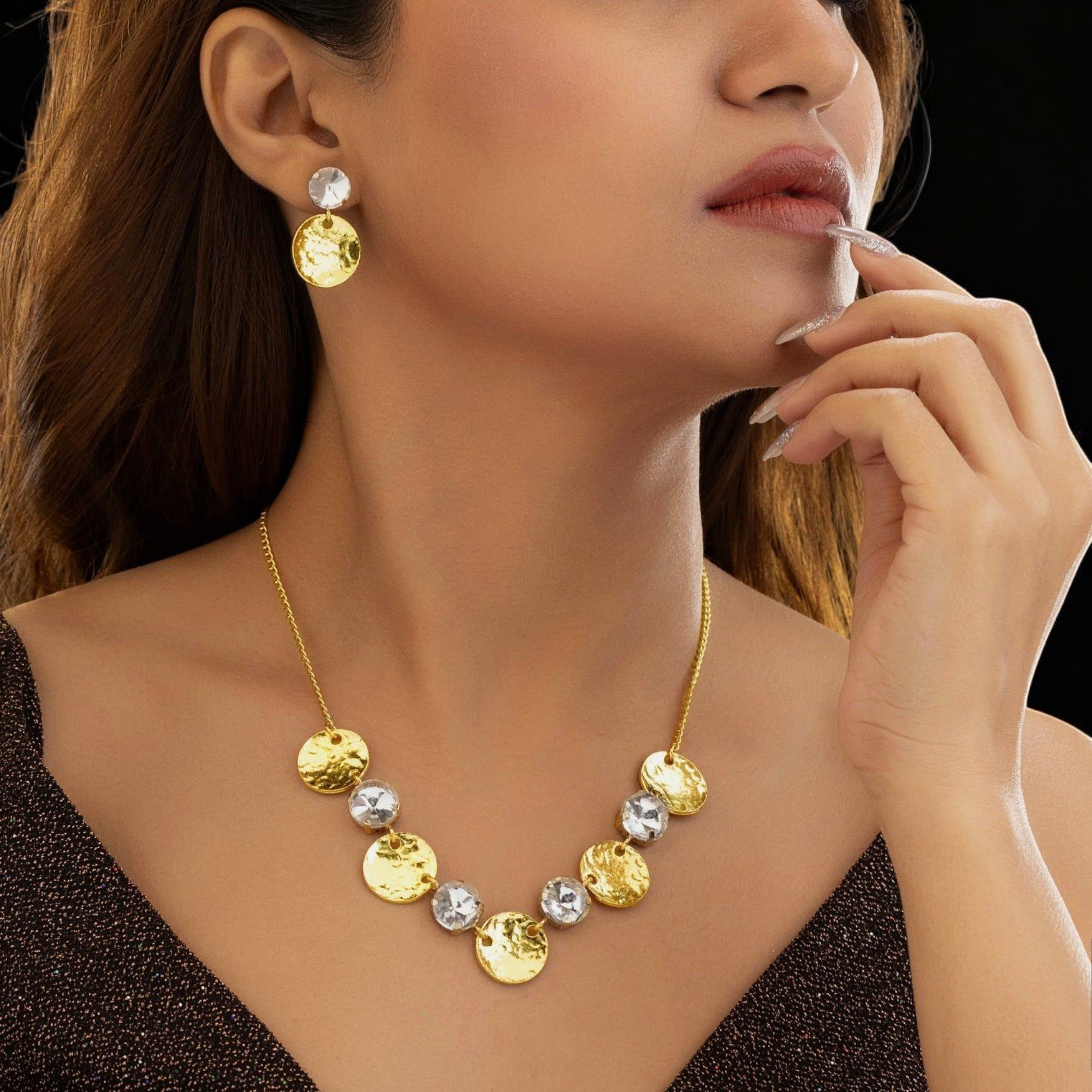 Hammered Gold Choker Necklace Set for Women & Girls – Stylish Statement Jewelry with Round Disc Earrings