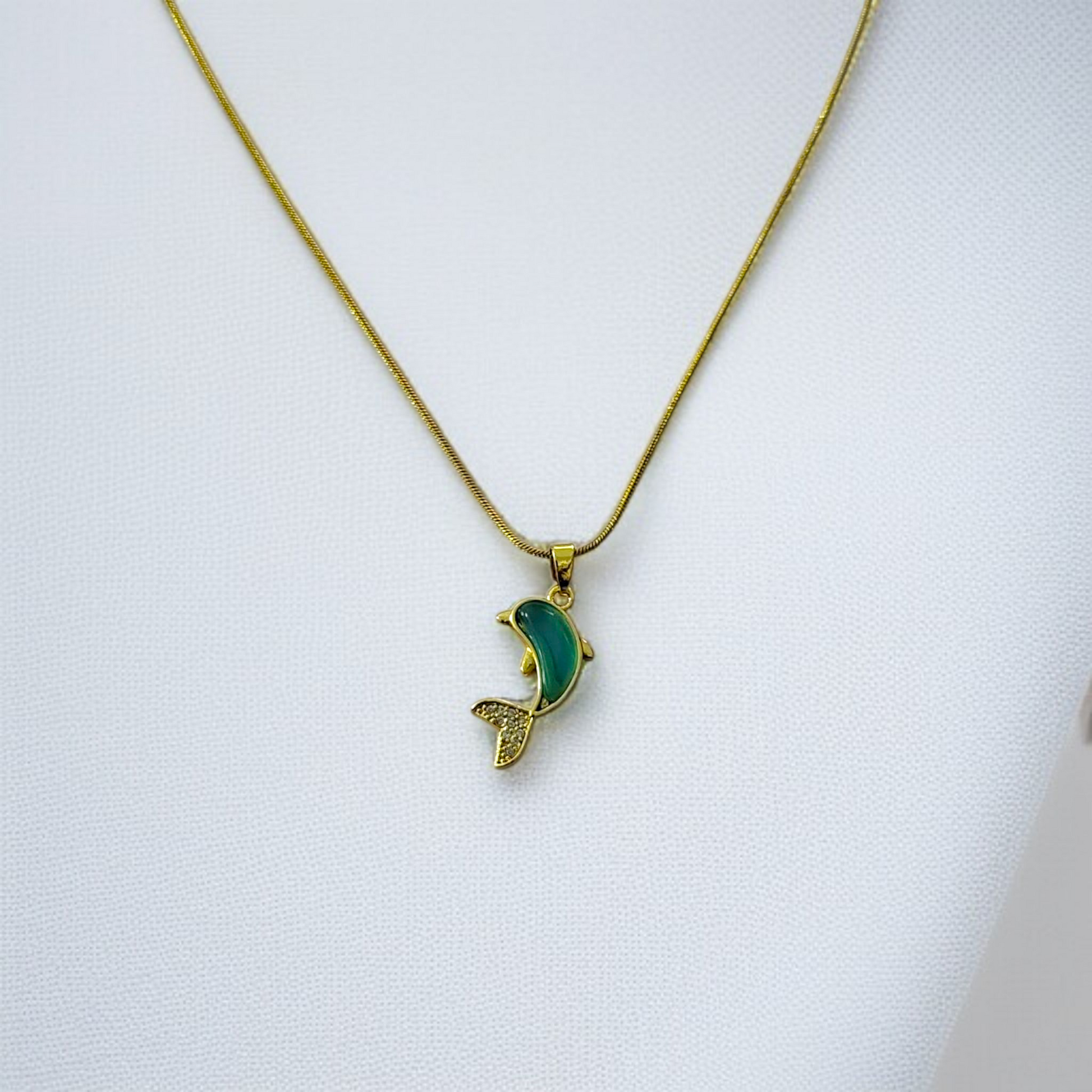 The pendant hangs on a sleek gold-tone chain, making it perfect for both daily wear and special occasions. Lightweight, stylish, and full of personality, this dolphin necklace is a delightful addition to the jewellery collection of women and girls who love playful yet classy accessories.